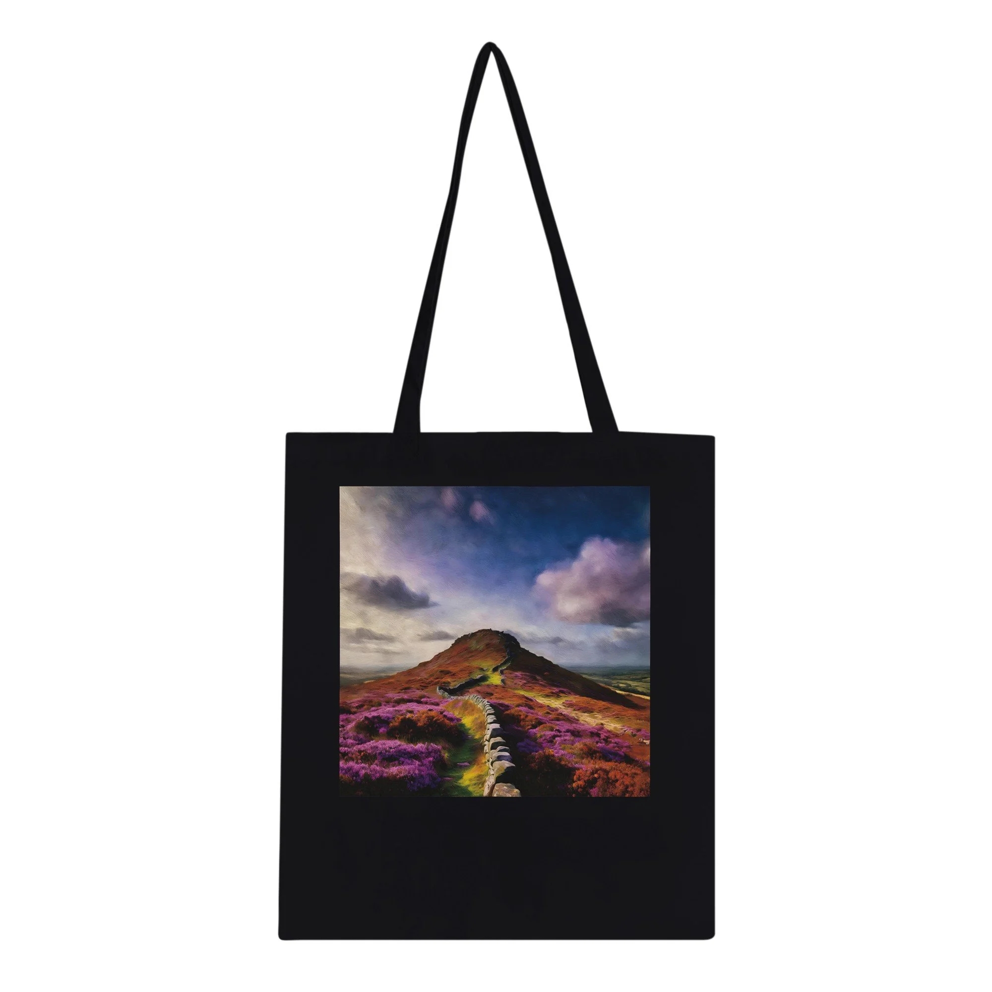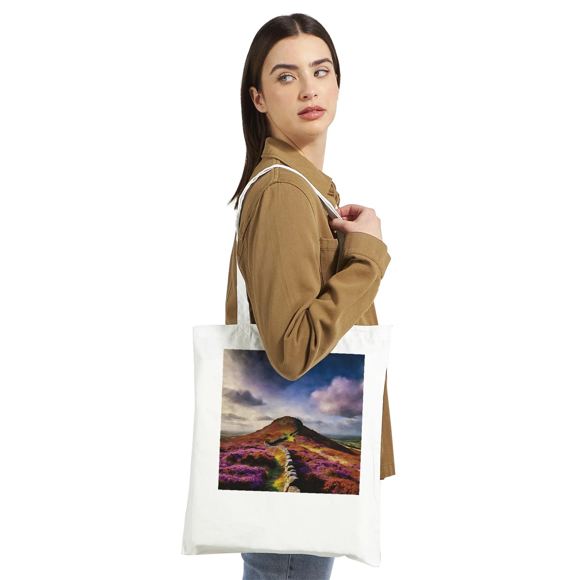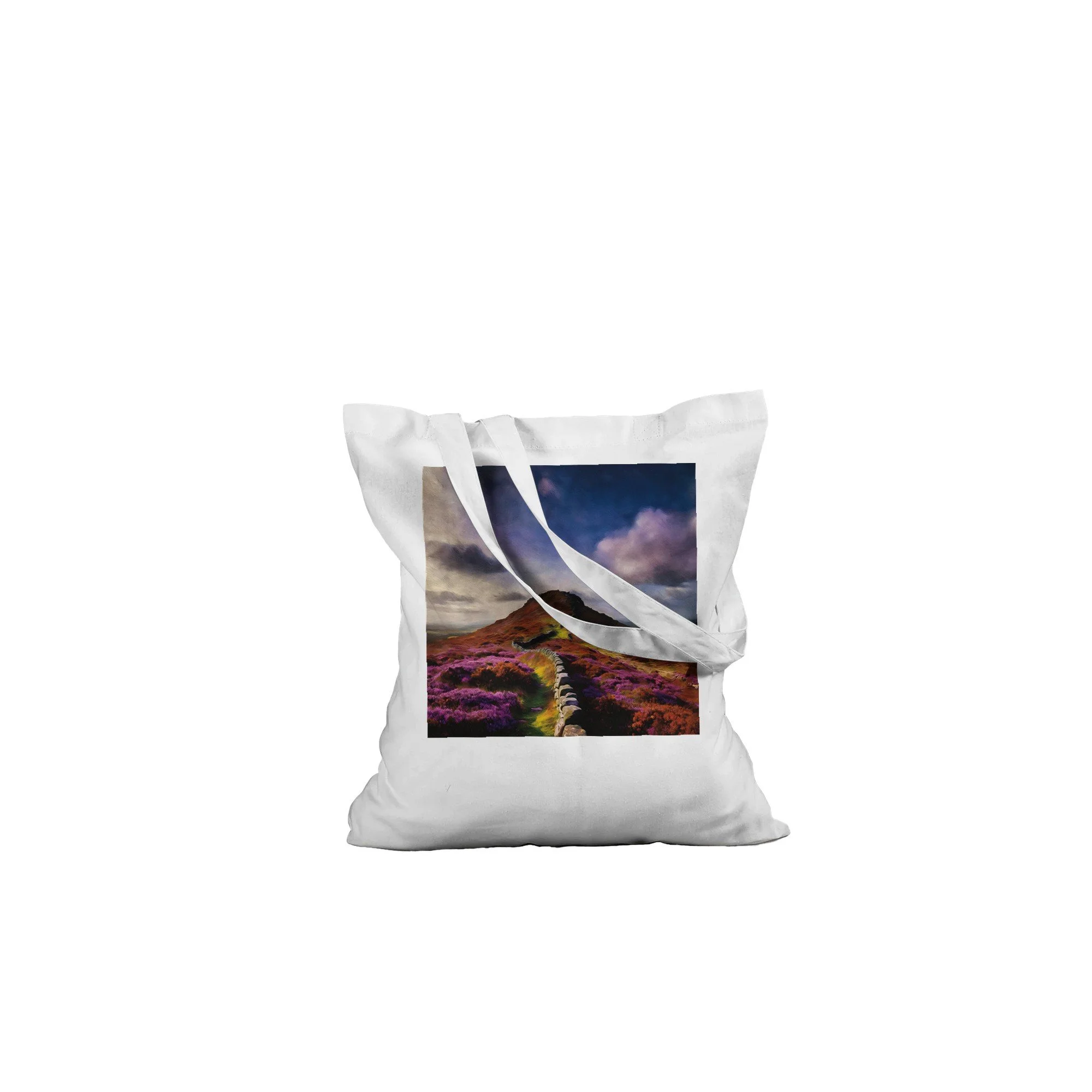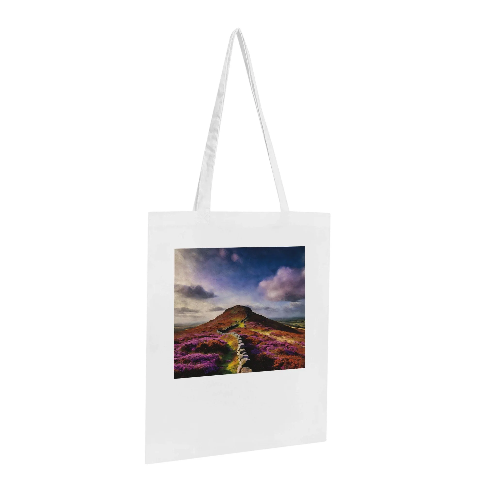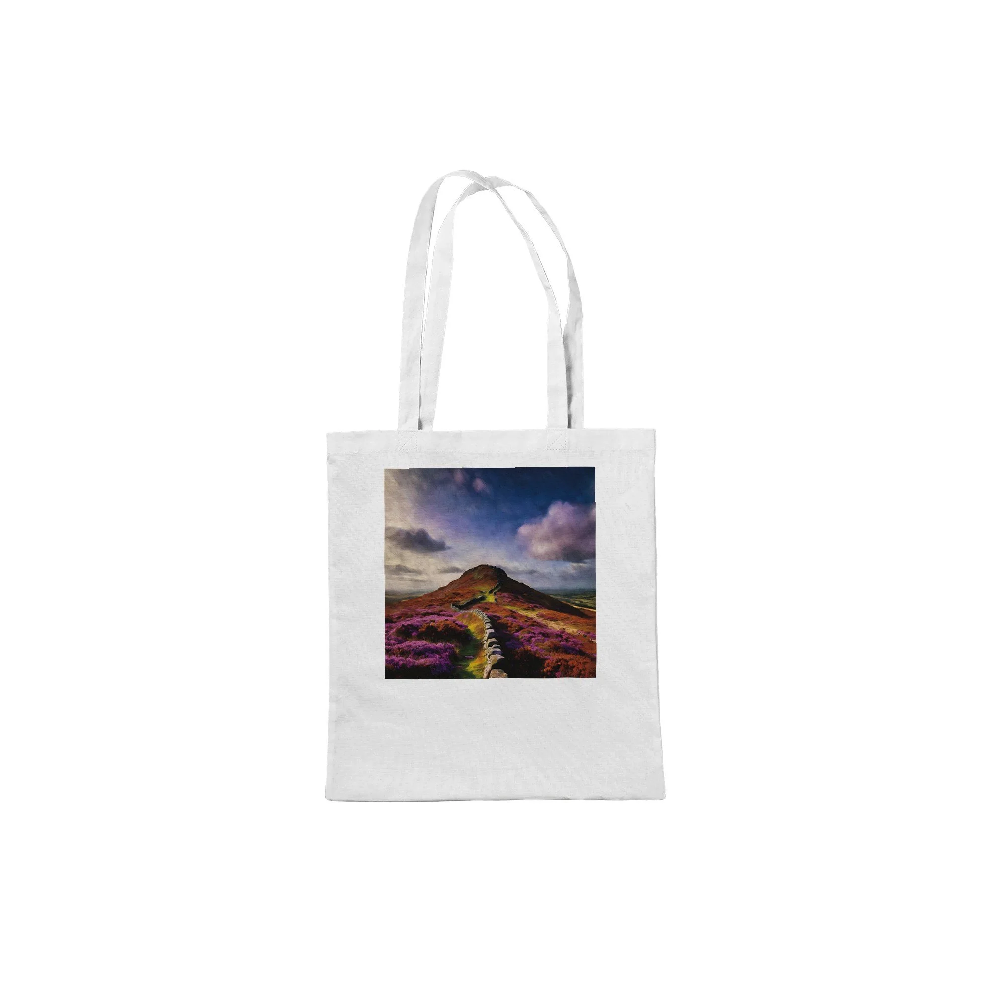 Introducing the Handmade Autumn Moors Tote Bag, your new eco-friendly companion for all your grab-and-go adventures! Crafted with care from 100% cotton, this spacious tote not only promotes sustainable living but also showcases the breathtaking beauty of scenic Roseberry Topping, making it the perfect accessory for nature lovers and eco-conscious shoppers alike. Whether you're heading to the farmer's market, the beach, or just out for a casual day, this tote bag has got you covered. With reinforced stitching on the handles, it offers the stability you need to carry all your essentials with ease. Imagine packing your favorite books, picnic supplies, or gym gear into this durable yet lightweight bag. The subtle natural color of the bag enhances the charm of any custom artwork. Please note, any whites in your design will be treated as transparent, ensuring that you get the optimal results for your personalized creation. With a generous capacity of 10 liters, this tote bag is both functional and stylish. Perfect for gifts, special occasions, or just a treat for yourself, this bag is made on demand with no minimums, allowing for full customization to meet your needs. Order yours today and embrace a lifestyle that’s as kind to the planet as it is stylish!