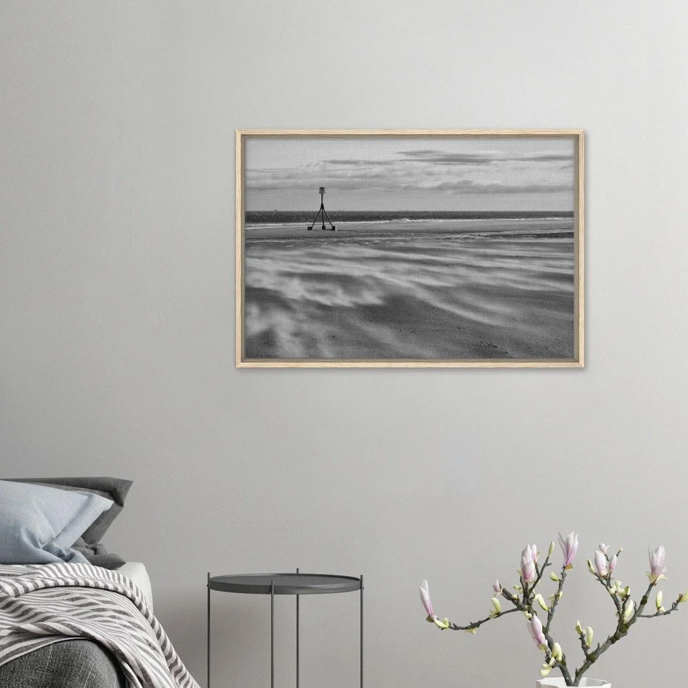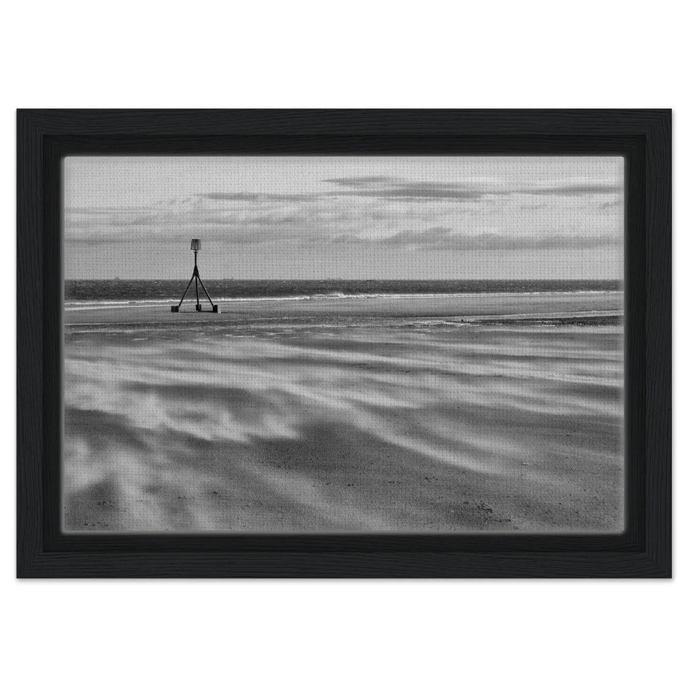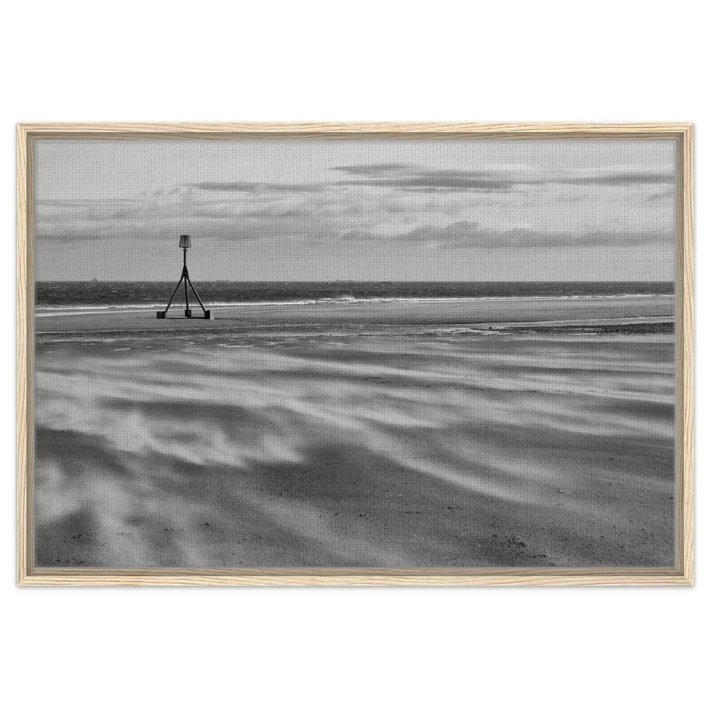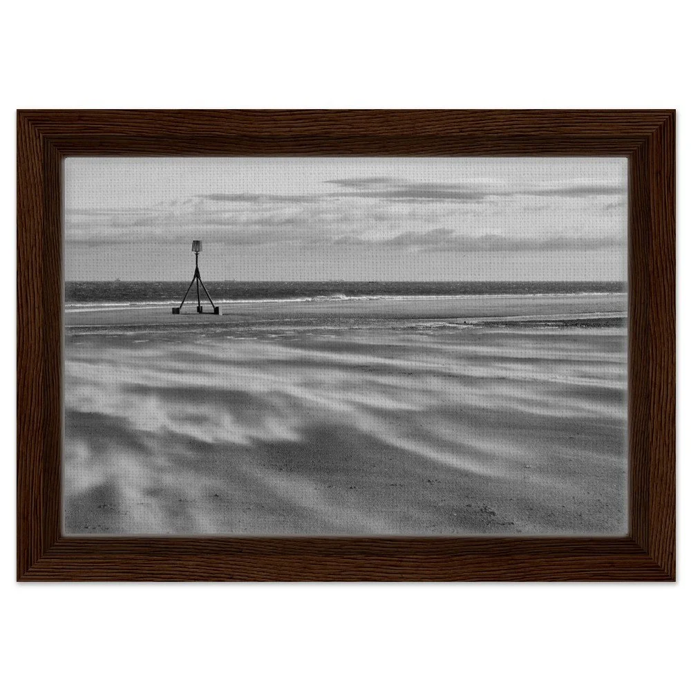 Bring the dramatic beauty of Redcar Beach into your home with this stunning black and white framed canvas print. Capturing the windswept atmosphere and iconic tidal marker, this artwork adds depth and character to any room.